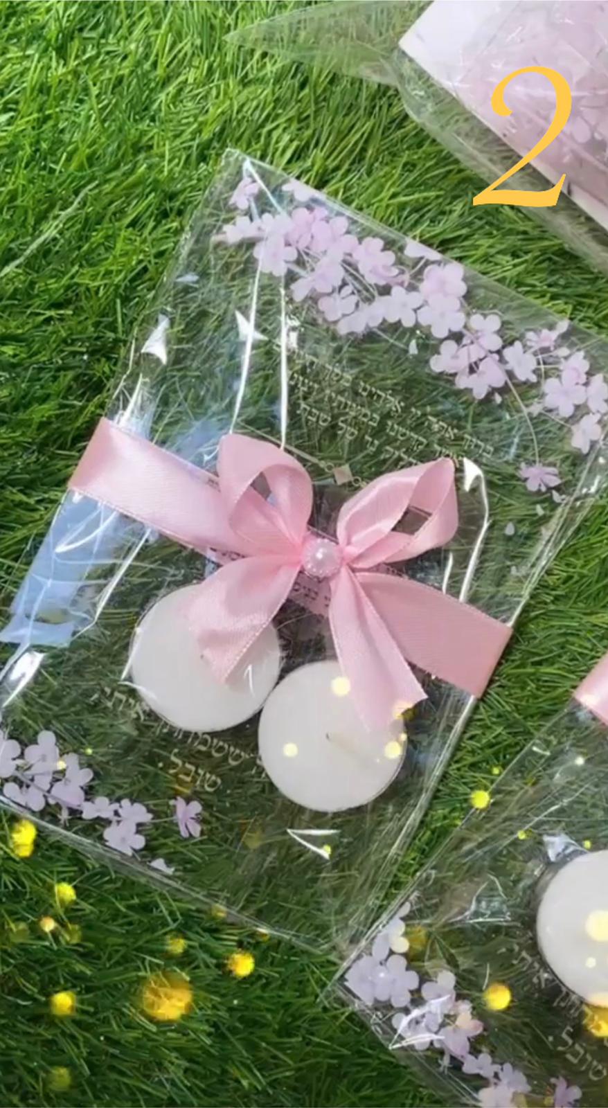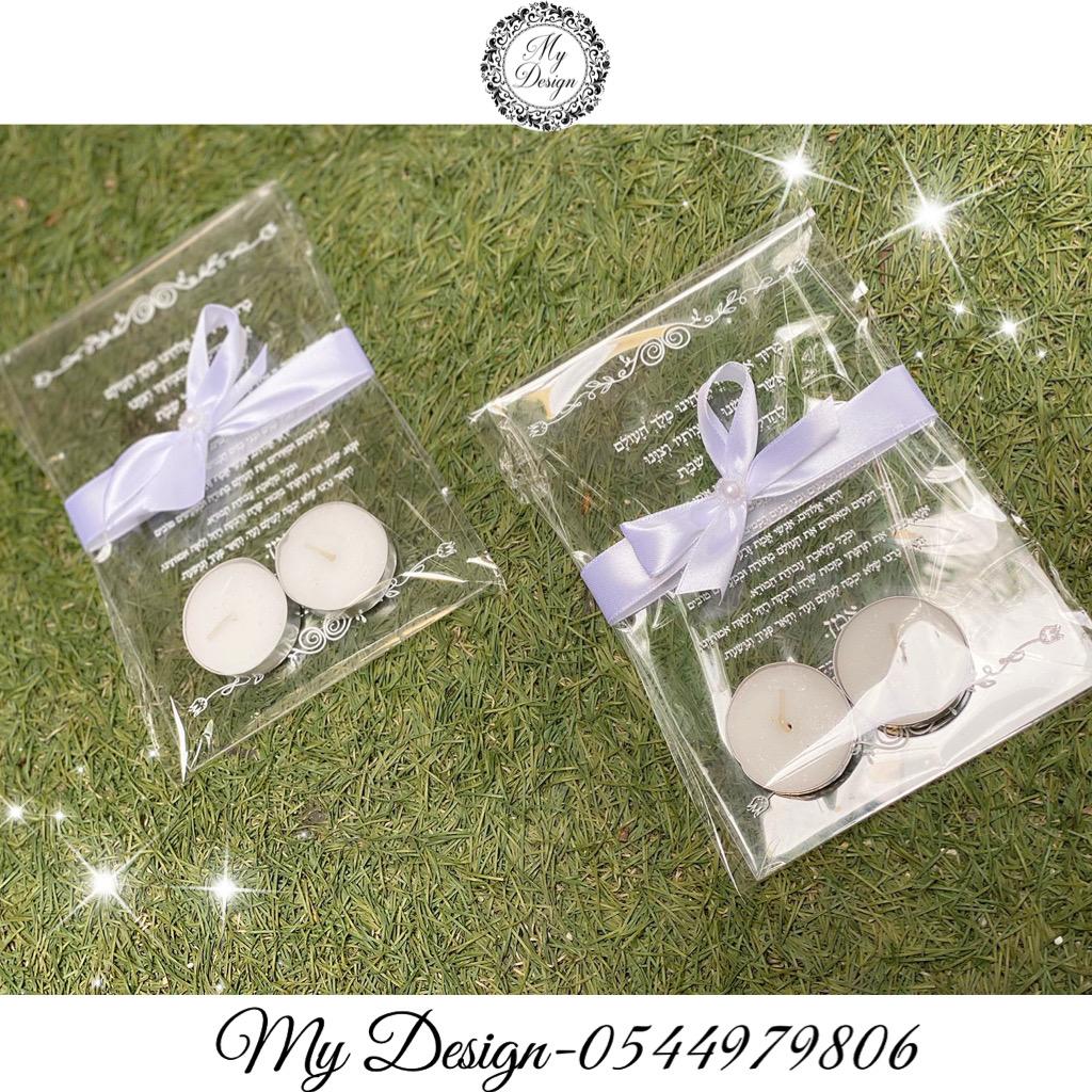 ברכון עשוי מפרספקט 2 מ"מ ארוז בצלופן מגיע עם 2 נרות שבת לבנים+סרט+פנינה לבנה.