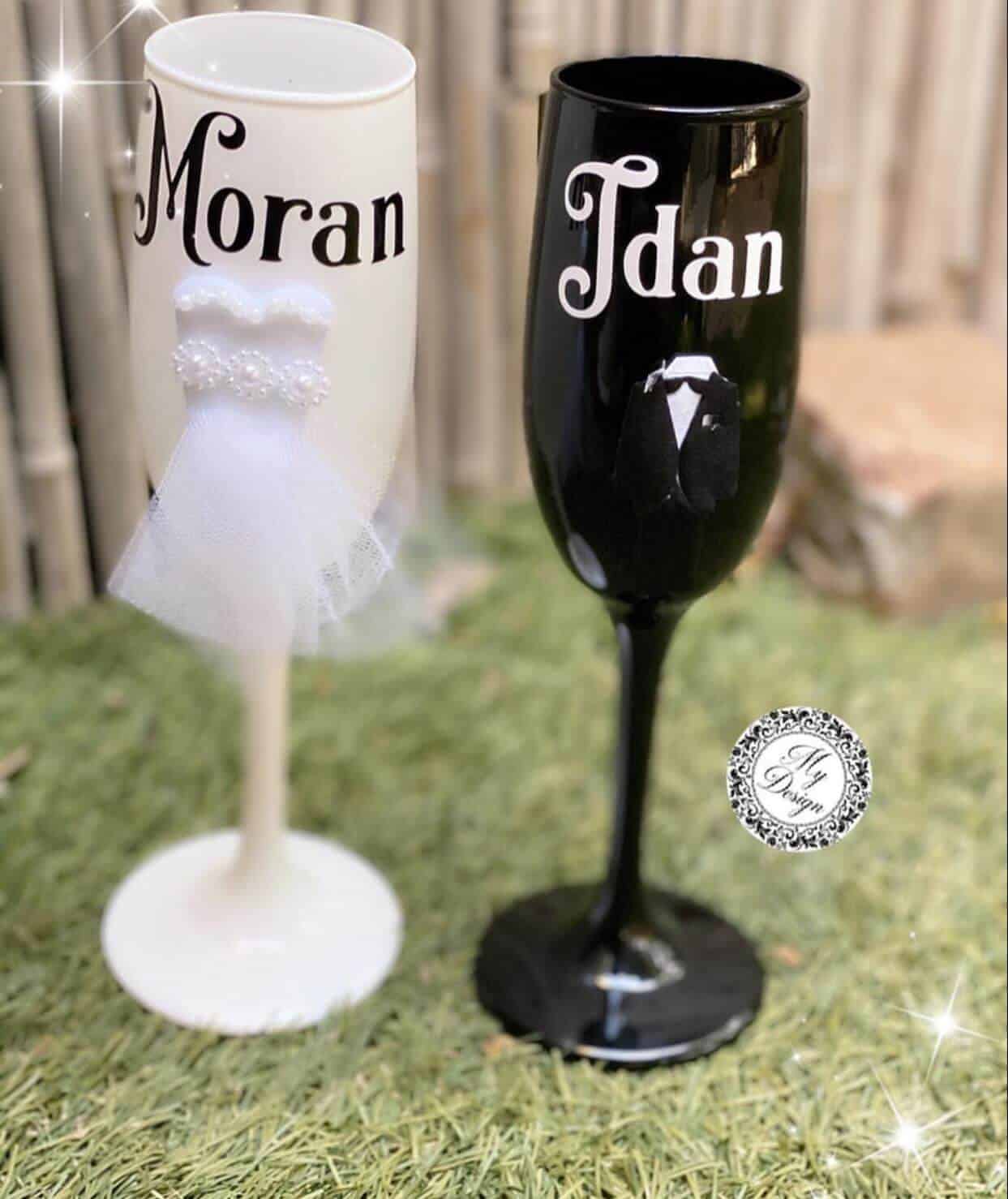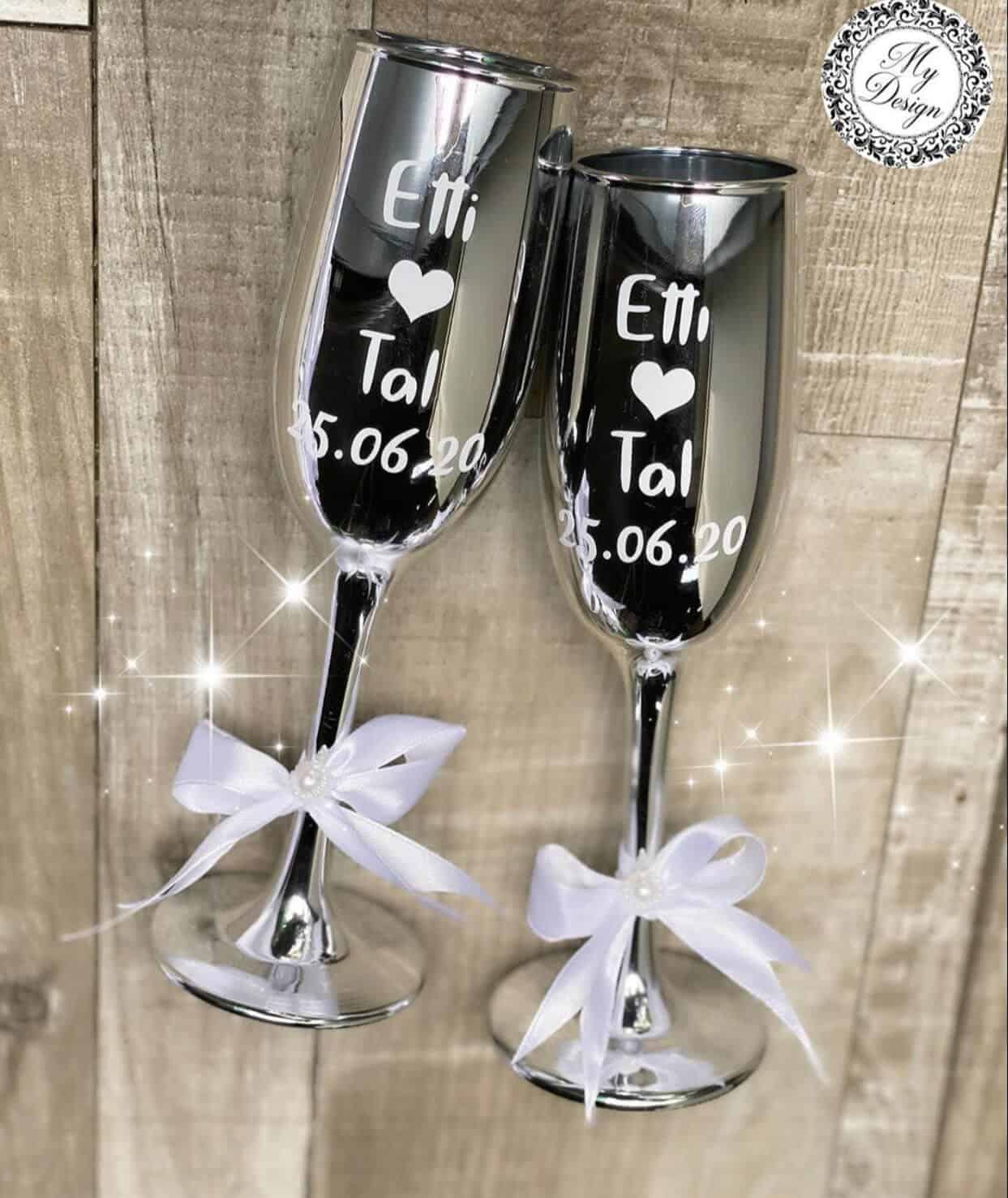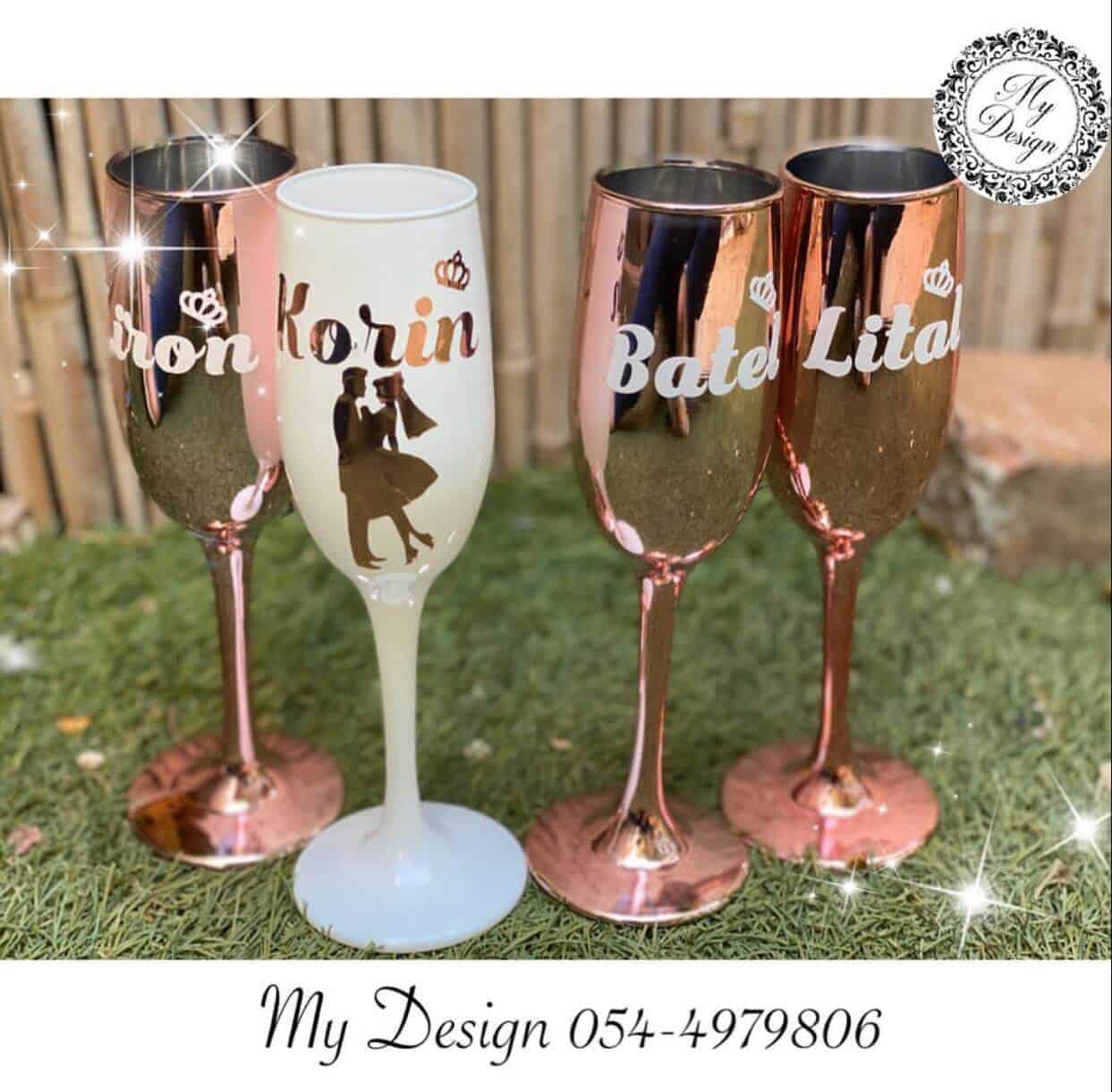 כוס שמפניה בצבע אטום לבחירה – ורודלבןכסףשחור עם מיתוג שמי+1 אייקון לבחירה
